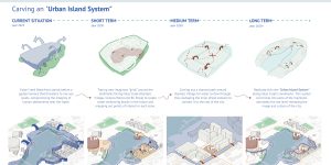 Our site looks at the future of Olympic Village and False Creek, embracing the rise in sea level that has often been approached with rigid, monotonous design (the seawall) to mitigate flooding. However, we consider water as the important element that could enrich and redefine this neighbourhood (and thus Vancouver's culture and urban identity), and preserving current protective structures only interferes with possible human-marine environment interactions.